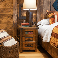 The Copper Mesa bedroom collection brings rugged elegance to your space with its rough sawn wood construction designed to look like authentic barnwood furniture. Each handcrafted piece features rich texture and unique copper panel inlays, adding warmth and rustic charm. Perfect for log cabins, western décor, or anyone seeking rustic bedroom furniture, this line includes standout items like a rustic wood bed, barnwood-style dresser, and matching nightstands. Built for durability and style, the Copper Mesa collection blends American-made quality with timeless appeal.