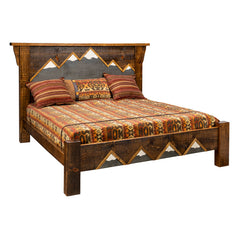 Crafted by Lakeland Mills, a leading rustic furniture manufacturer, our Rocky Mountain High rustic furniture collection brings the soul of the mountains into your home. Made from rough-cut and circle-sawn pine, each piece is hand-finished to mimic the charm of weathered barn wood. The standout feature is the hand-carved mountain scene, artfully embedded in both the headboard and footboard, offering a stunning tribute to the wild outdoors. This bed is not just furniture—it’s a statement of natural beauty and craftsmanship. The rugged textures and warm tones bring comfort and character to any cabin, lodge, or rustic retreat. Built to last and designed to impress, it’s a bold blend of artistry and durability. Bring the mountain spirit home with this unforgettable piece from our Rocky Mountain High collection.